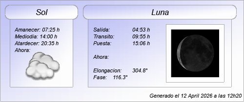 INFORMACIÓN DEL SOL Y DE LA LUNA (EFEMERIDE):