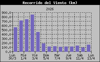 Es la medición del viento que pasa por la estación durante un periodo de tiempo dado, y se expresa en kilómetros de viento. WeatherLink calcula esta variable multiplicando la velocidad del viento promedio para cada intervalo del archivo.