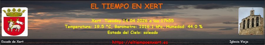 | Esta tarde ![]() Despejado | Esta noche ![]() Despejado | Miércoles![]() Soleado | Miércoles noche ![]() Practicamente despejado | Jueves![]() Muy poco nuboso | Jueves noche ![]() Parcialmente nuboso | Viernes![]() Muy poco nuboso | Viernes noche ![]() Parcialmente nuboso |