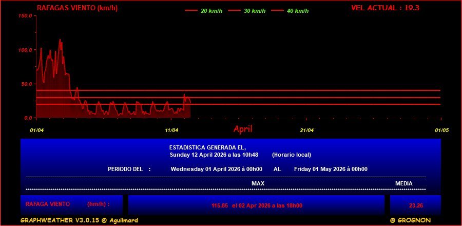 Gráficas y estadísticas creadas a partir del software GraphWeather 3.0.34 y WeatherLink 6.0.3