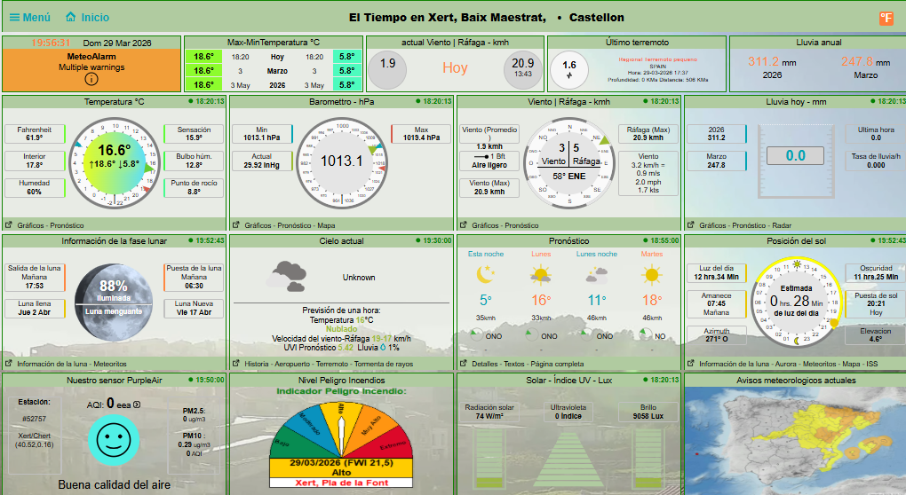 Esta web se actualiza por el momento 4 veces al día, se actualiza cuando se ejecuta el software Cumulus, muy aconsejable para ver estadísticas, comparaciones y récords